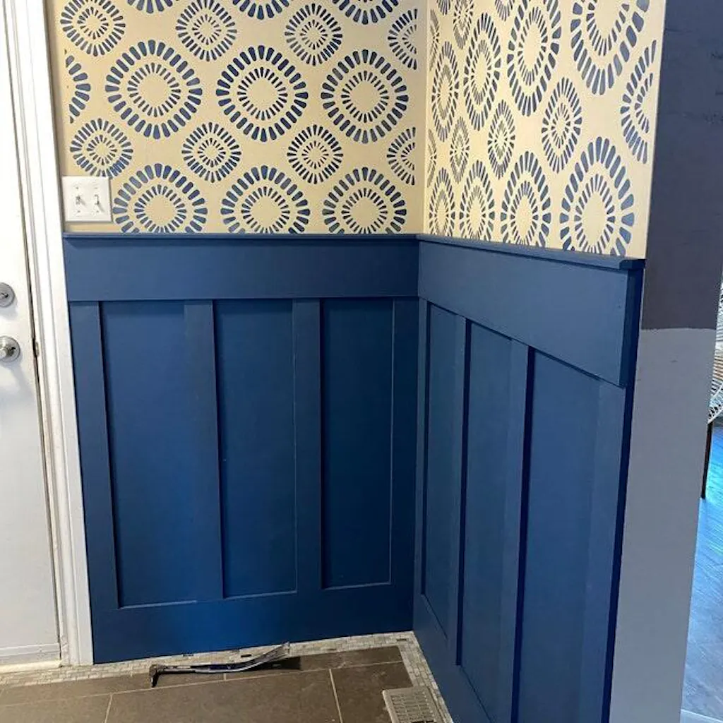 Purchased two stencils from Stencilology and was excited to use them! There was a glitch with FedEx but Emel was amazing and resent my order. I ordered ASI and Ural and have completed my entryway project and I love it!! It took a bit of fitness to get the crisp edges but a little bit of paint on foam roller and a tight seal on the wall helped a lot. I’m looking forward to working on my next stencil project! Thanks!!