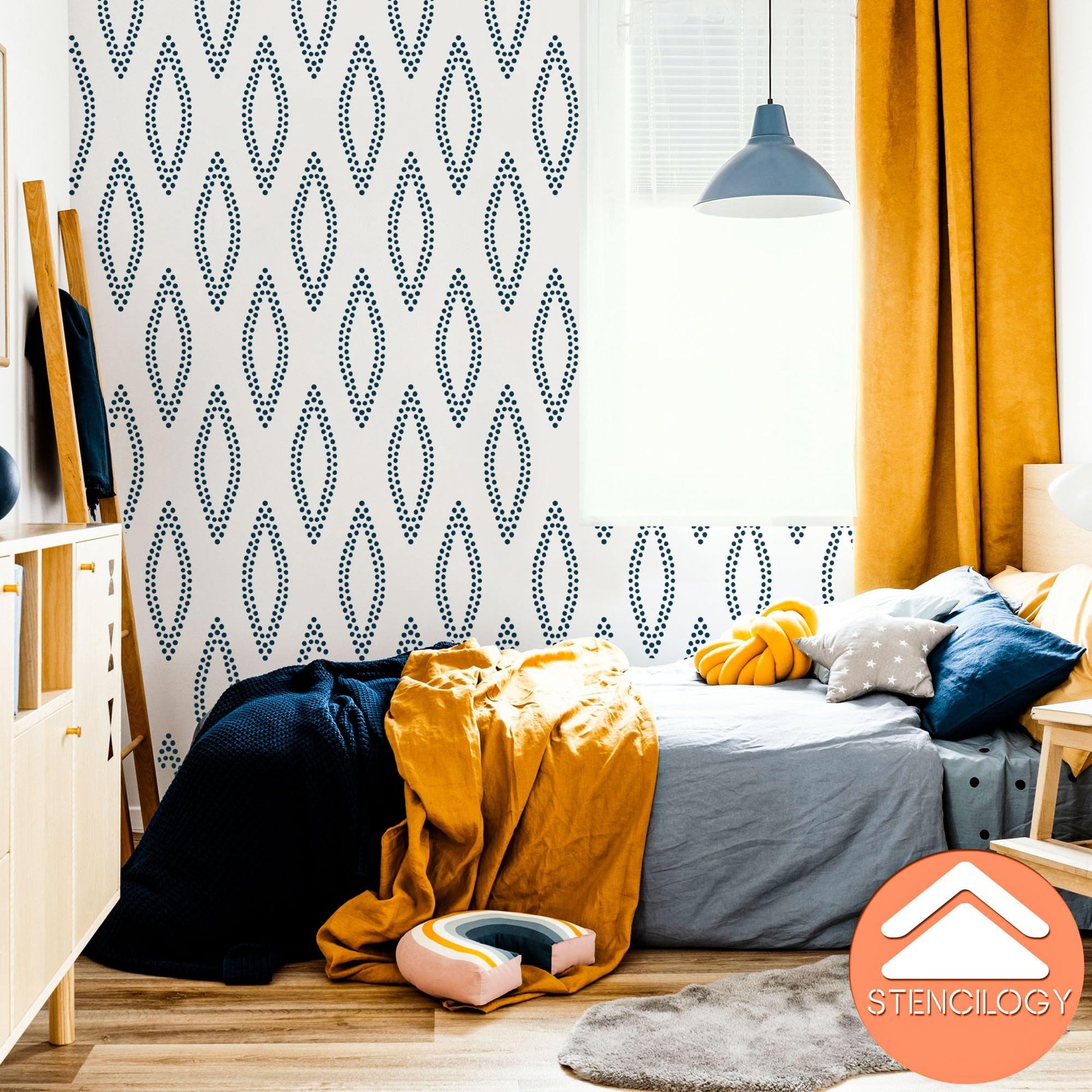 URAL- XL Wall Stencil, Large Allover Wall Stencils for Painting, Stencils for Walls, Large Sashiko Scandinavian Wall Stencil