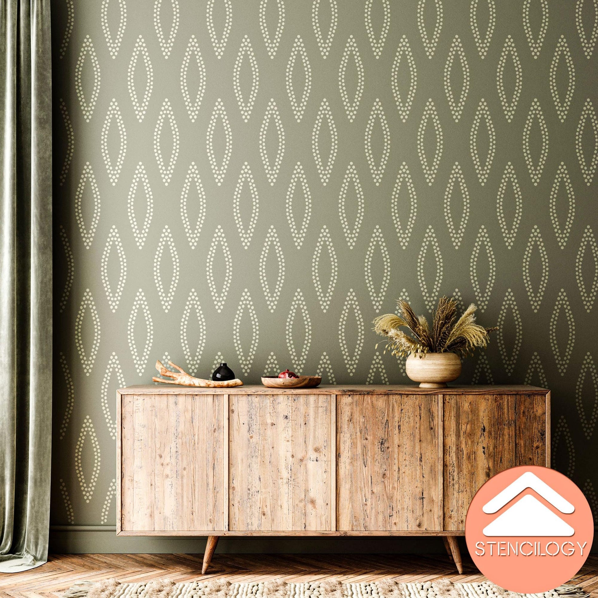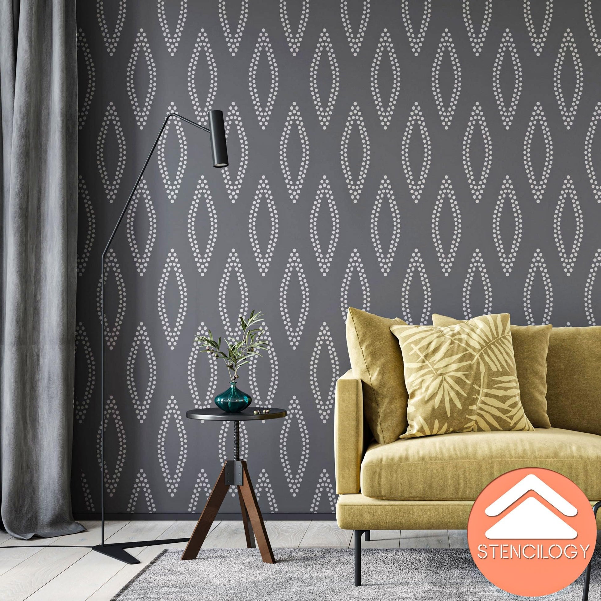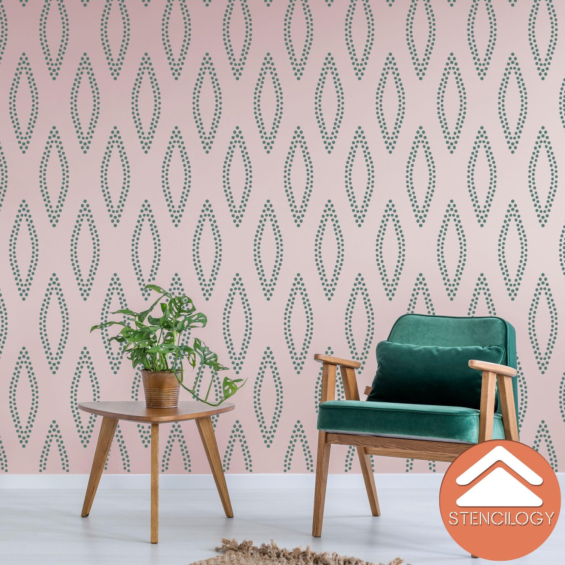 Dotted Leaf Wall Stencil – Playful Symmetry, Modern EleganceXL Stencil Design Size: