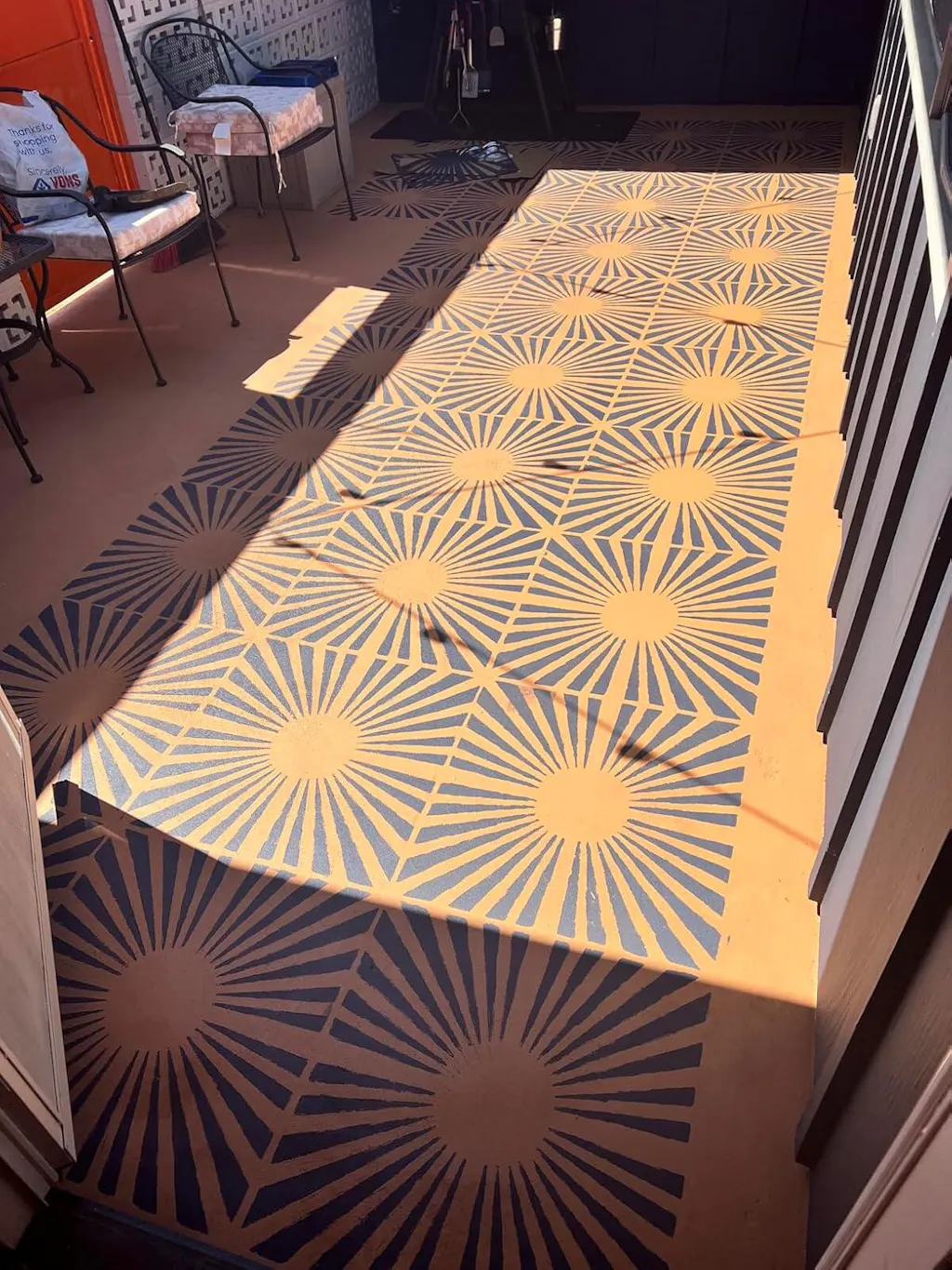 Modular Sunray Tile Stencil for Floor, Tile & Wall PaintingDesign Size: